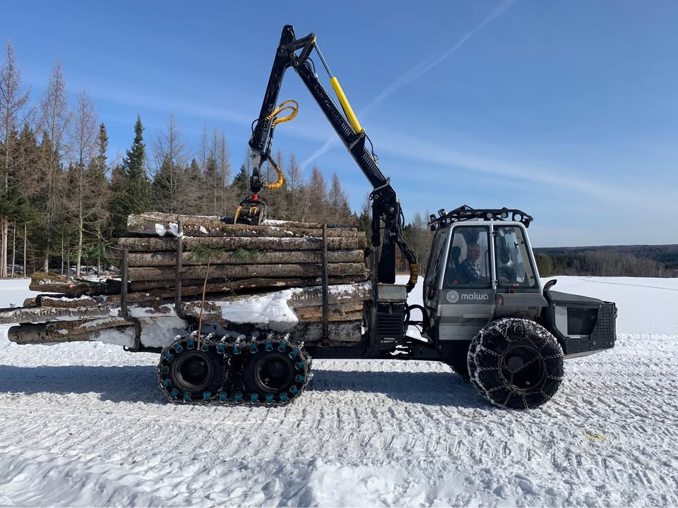 La Malwa 560C combine deux machines en une; abateuse et transporteur. Ce qui permet d’intervenir sur la coupe ET le transport sans changer de machine.